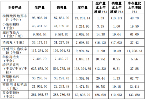 报告期内,养阴清肺膏、养阴清肺合剂、氨咖黄敏胶囊、头孢克肟系列(含原料)、蜜炼川贝枇杷膏 、清开灵产品系列、蛇胆川贝液、小柴胡颗粒、蛇胆川贝枇杷膏等产品的销售收入实现同比较快增长。