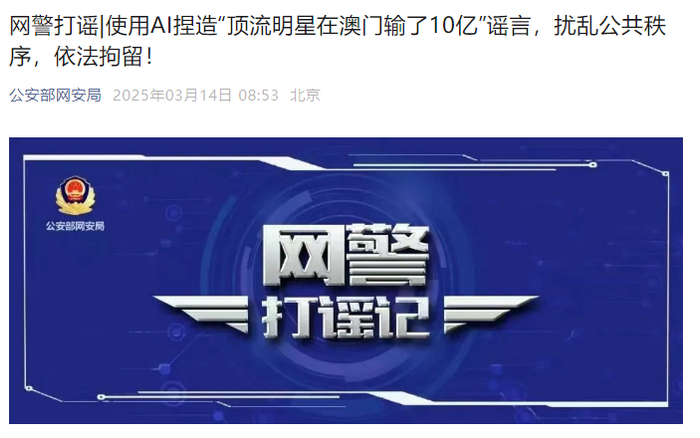 公安网安部门查明,网民徐某强(男,36岁)为博取流量、谋取非法利益,于2025年3月10日10时,使用软件“某书”中AI智慧生成功能,输入社会热点词制作了标题为“顶流明星被曝境外豪赌输光十亿身价引发舆论海啸”的谣言信息,并通过互联网平台对外发布,造成谣言迅速传播扩散,引发大量网民议论,诱发相关谣言、话题等频繁登上热搜热榜,严重扰乱公共秩序。