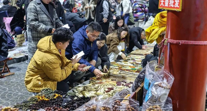 潘家园夜市里的文玩玉米盲盒人物 摄