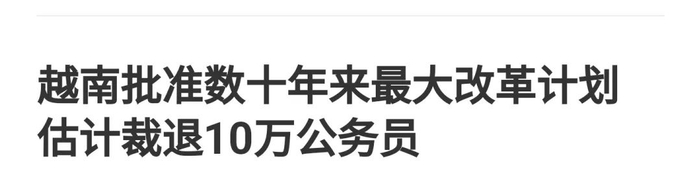 还记得不?就在一个月前,越南通过机构改革方案,撤销9个部委、700多个司局、3300多个分局及200多个事业单位。