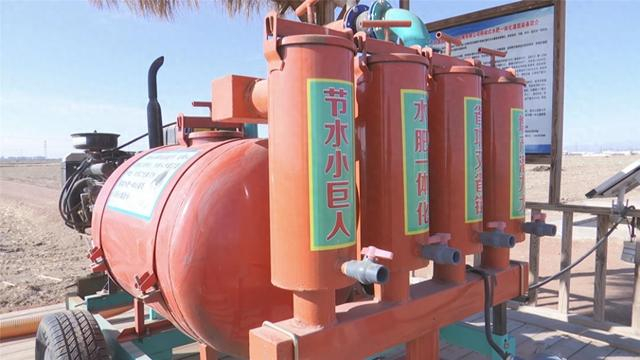 “公司在农机装备研发方面已荣获60多项技术发明专利,这台第二代可移动式黄河水直滤水肥一体化灌溉设备是公司自主研发的,它通过泵前节水过滤器过滤掉水中泥沙漂浮物,再通过泵后离心过滤、网式过滤三次过滤后,水质达到滴灌标准进入田间地头,目前我们已投入使用3000余台,节水节肥节药30%左右,省时省工省力50%左右。”内蒙古大博金田机械有限公司副总经理王飞介绍。