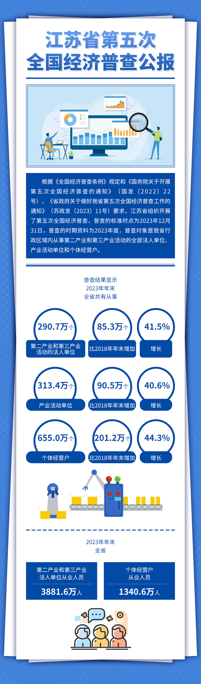 增长41.5%!江苏省第五次全国经济普查公报(第一号)发布——江苏省第五次全国经济普查顺利完成