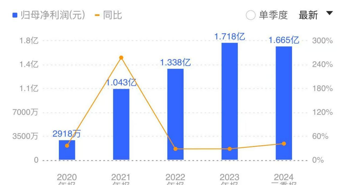 通过浙江荣泰历年财报可以看出,其主业经营状况良好,盈利能力在线。2022年至2024年前三季度,浙江荣泰营收分别为6.68亿元、8.00亿元、8.09亿元;净利润分别为1.34亿元、1.72亿元、1.67亿元;扣非净利润分别为1.20亿元、1.60亿元、1.55亿元,且同比均为上升状态。