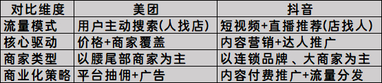 与此同时,行业竞争重心也在发生转移。当补贴减少、价格趋同后,用户仍然需要决策依据,商家仍然需要流量与转化渠道。在这样的背景下,抖音亟需借助更具可持续性的方式提升用户留存与商家转化。抖音与美团的运营逻辑出现明显分化,内容成为破局关键。