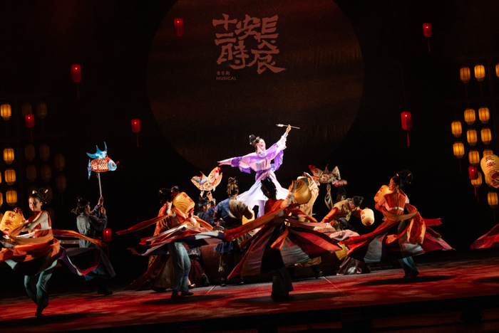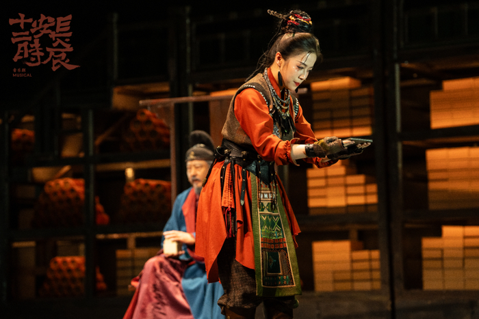 通过望楼、坊市等细节,音乐剧《长安十二时辰》在舞台上还原了一派民生富足的长安城风貌,通过灯光与布景的明暗对比,隐喻危机与希望的交织。