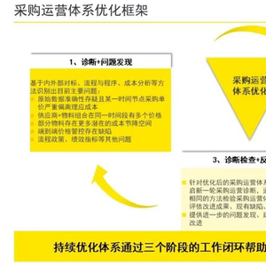帮助客户借助供应端市场竞争优势,运用缩短供应链、整合供应商等策略,有针对性地帮助客户寻找大幅降低采购成本的机会,实现显著的采购成本节约;通过构建“诊断—实施推广—反馈改进”的采购运营体系优化框架,深入分析订单数据,精准把握价格变动与成本优化空间,有力推动采购运营管理能力的提升;对客户的采购运营管理体系与能力进行评估,找出信息流转与管理的缺陷与断点;有效识别潜在风险,通过比对物料订单数据与合同文件,排查出价格异常的物料及供应商并深入调查,为采购风控合规管理筑牢防线。