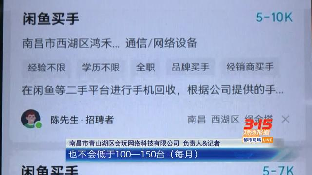 3·15前夕,都市现场记者投递简历应聘入职了位于江西南昌市广场南路205号恒茂国际华城16栋B座的“西湖区瓜瓜电子科技工作室”。该工作室表面上从事计算机及通讯设备租赁和销售,但实际上是一个以电商买手身份在闲鱼平台上大量采购二手手机和平板的团队。
