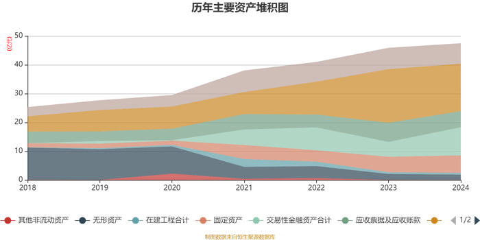 资产重大变化方面,截至2024年末,公司交易性金融资产合计较上年末增加89.51%,占公司总资产比重上升9.34个百分点;货币资金较上年末减少11.38%,占公司总资产比重下降5.82个百分点;应收票据及应收账款较上年末减少15.95%,占公司总资产比重下降2.73个百分点;投资性房地产较上年末减少80.18%,占公司总资产比重下降2.36个百分点。