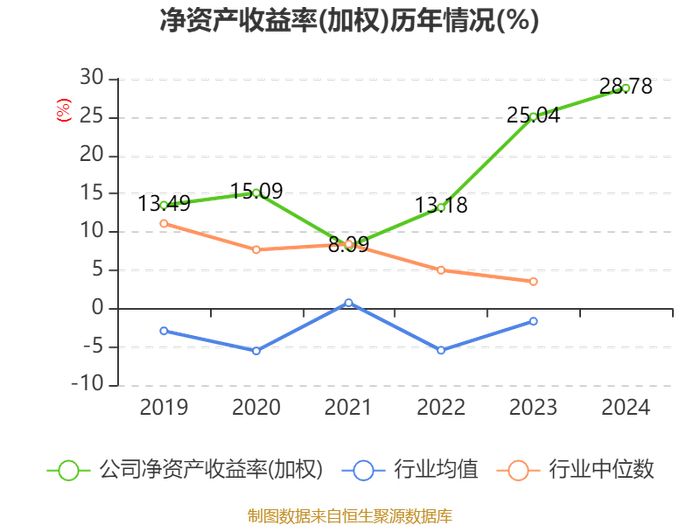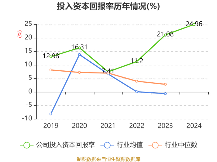 数据显示,2024年公司加权平均净资产收益率为28.78%,较上年同期上升3.74个百分点。公司2024年投入资本回报率为24.96%,较上年同期上升3.88个百分点。