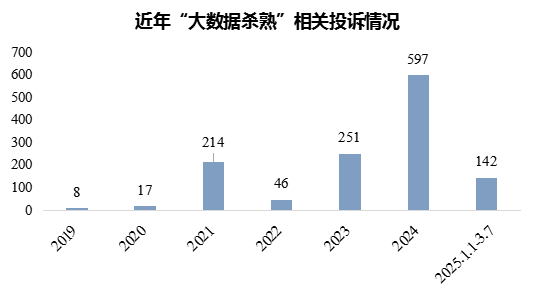 李先生的情况并非个案,中国电子商会旗下的消费保平台发布的数据显示,2019年至2025年3月7日,消费保平台已经收到关于“大数据杀熟”的投诉多达1275件,自2025年1月1日至3月7日,仅两个月时间就收到了142件投诉。由此可见,“大数据杀熟”情况并未逐年好转,反而随着技术的不断发展呈现高发态势。