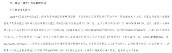 潜江市市场监督管理局于2024年9月发布的公告也显示,银冠(潜江)食品有限公司生产的两批次敢拧NFC非浓缩还原橙汁均被抽检出苯甲酸钠及山梨酸钾这两种防腐剂,而该产品宣传的是100%纯果汁、零添加。