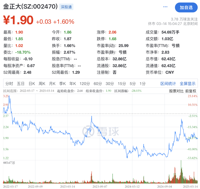 2023年7月15日,公司向深交所提交撤销其他风险警示申请,经深交所同意,2023年7月24日,公司股票撤销其他风险警示,由“ST金正”变更为“金正大”。目前,金正大股价仍在2元上下徘徊。