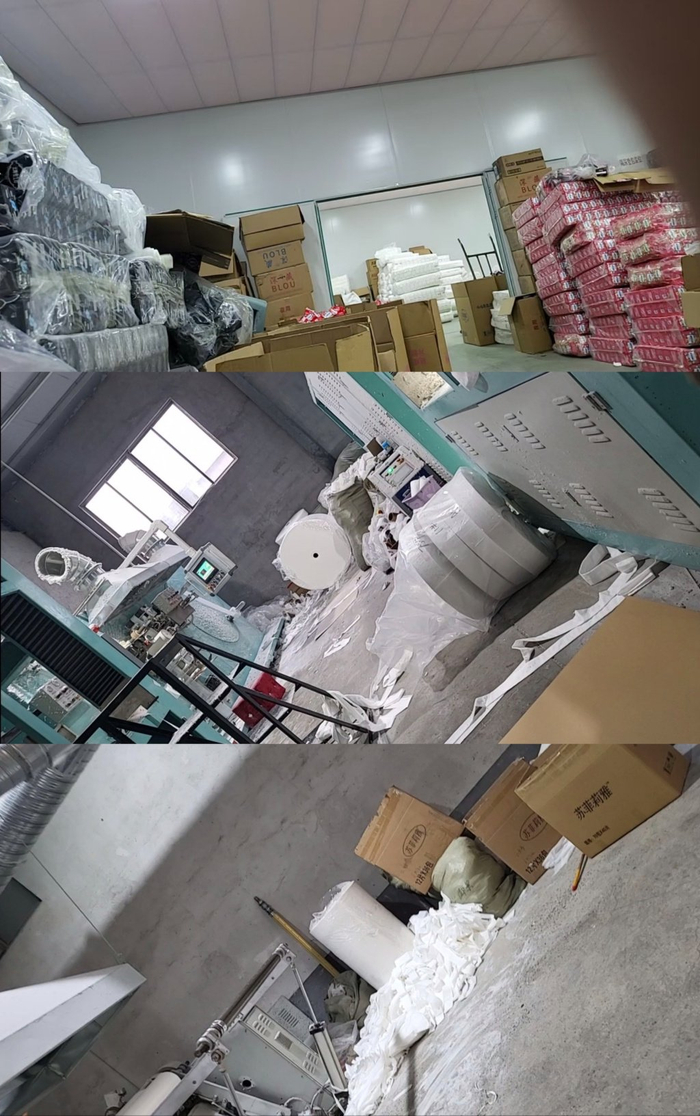 生产车间的自动化流水线,离厕所只有十多米,生产车间未见消毒设施和隔离措施。车间堆着大量原料。徐某梦给记者展示了国产复合纸,以及自称进口供货商“掺杂”的国产木浆。他介绍,这种国产木浆看似是白色,实际含有合成粉、粉尘等添加剂,一遇水会起化学反应,“主要为了增重”。机器一打,木浆变黄,放置三五个月后还发红,容易检测出荧光剂超标等问题,“对人体肯定是不好的”。不过,若短时间内能销售出去,“一点问题都没有。”他还透露,很多小厂使用这种料,主要用做成人尿布,给那些卧床不起的老人使用,“痒了也不知道。”