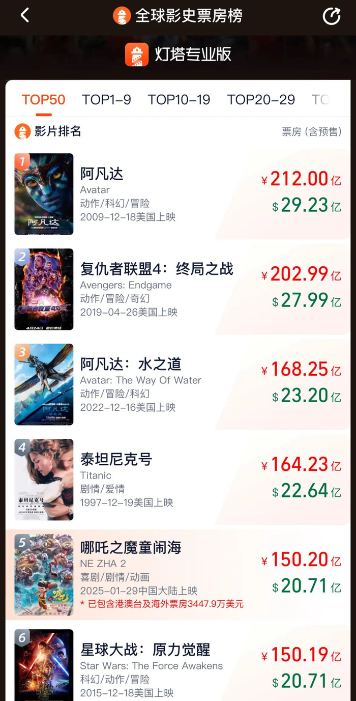 《哪吒2》从TOP10到TOP5晋级之路!