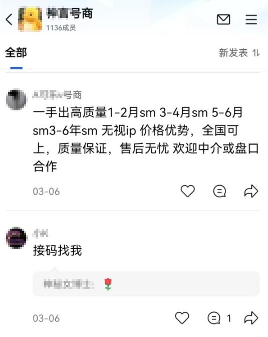 技术、设备、服务,囤号依流程上的不同节点被拆分成数个子项目,卖家会给这些项目披上诸如跨境电商创业、无人直播带货等新业态的外衣,让人乍看之下,不会觉得这类项目越过了法律底线,让他们得以在二手交易平台上被找到。而在相关商品详情页下方,有卖家以“sm(实名)”“接码”等圈内黑话留言,引导买家到微信、QQ等站外社交平台沟通交易,完成整套流程。