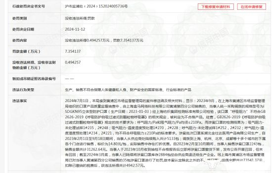 上述行为属于生产、销售不符合保障人体健康和人身、财产安全的国家标准、行业标准的产品,因此,浦东新区市场监督管理局于2024年11月12日对其做出罚款并没收违法所得,共计超7.8万元。