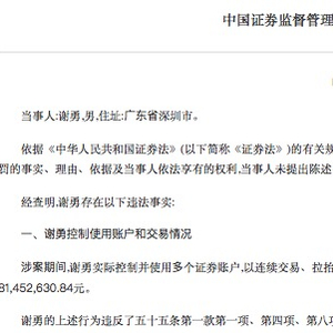 近日,中国证监会网站披露两则针对操纵证券市场行为开具的行政处罚决定书,揭开了投资者谢勇、杨波操纵“渝三峡A”、“安奈儿”等股票的内幕。2人合计被罚没4.57亿元。