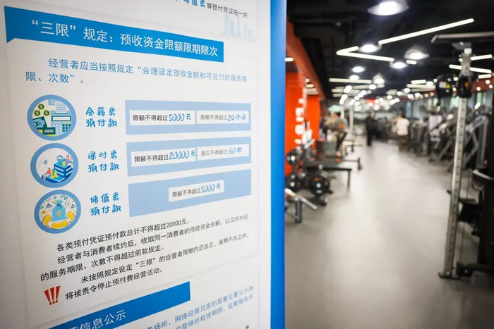 今年3月1日,《上海市体育健身行业预付式消费经营活动监管实施办法(试行)》(以下简称《实施办法》)正式实施。《实施办法》首次明确体育健身行业预付款“限额、限期、限次”。即经营者对同一消费者一次性收取会籍类预付款金额在5000元以下、时长在24个月以下;课时类(团操、私教、泳教等)预付款金额在20000元以下、次数在60次以下;储值类等(兜底)预付款金额在5000元以下。经营者对同一消费者收取各类预付凭证预付款总计不得超过20000元。