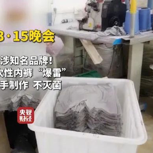 2025年央视“3·15”晚会曝光第二个行业乱象:一次性内裤徒手制作不灭菌。商丘市梦阳服饰有限公司被曝,其生产的一次性内裤,并不卫生,根本就不会杀菌。产品包装上标注的面料材质是“棉”,实际却使用的“涤”,在一些型号的一次性内裤上,企业直接写上“纯棉”,严重“货不对板”。