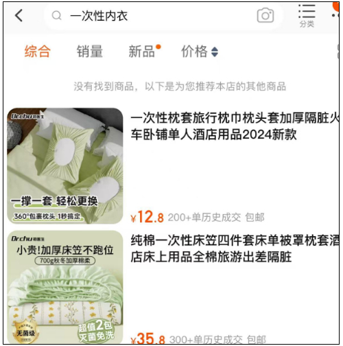 在初医生旗舰店内搜索“一次性内衣”,也显示“没有找到商品”。