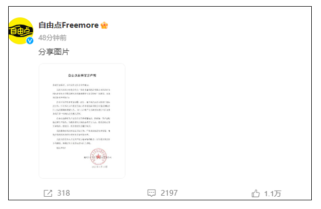 我们向信任自由点的用户致以最诚挚的歉意!后续将持续更新事件进展,并通过官方渠道及时向社会通报。