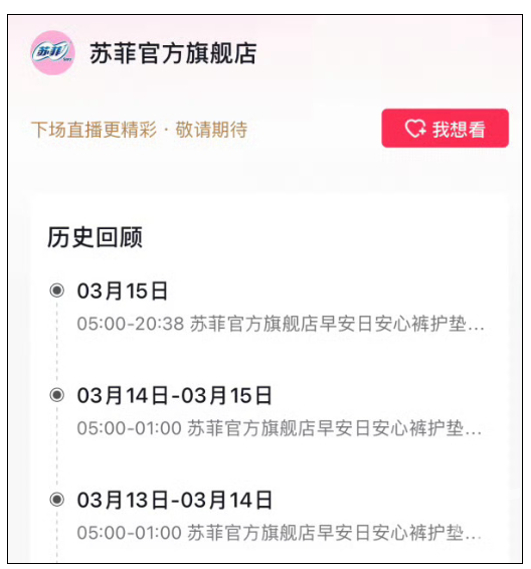 同时,多家一次性内裤品牌直播间停播,苏菲官方旗舰店、自由点官方旗舰店、中亿孕婴童团购优选、嫚熙EMXEE官方旗舰店、好之官方旗舰店、MIFFY米菲婴童用品旗舰店等品牌的抖音直播间也相继停播,上述直播间的停播时间在20时至20时40分之间。全棉时代多个抖音直播间正常直播。