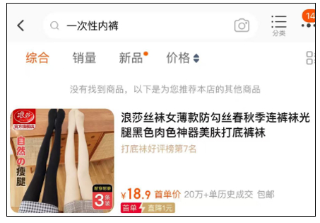央视报道后,记者发现浪莎官方旗舰店已下架了所有一次性内裤。在浪莎官方旗舰店搜索“一次性内裤”,结果均显示“没有找到商品”。
