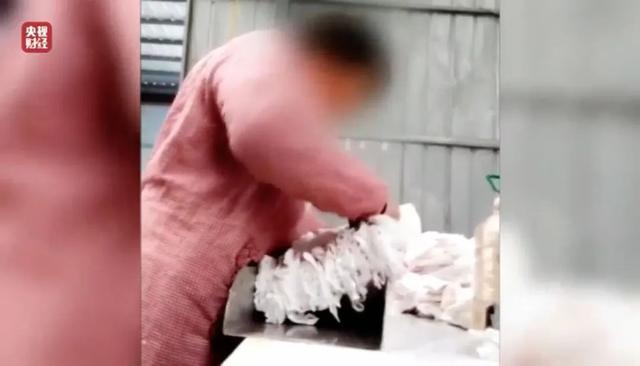 在现场不仅没有任何卫生消毒设备,整个过程工人都是徒手操作。