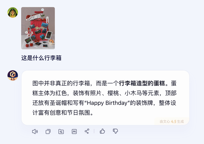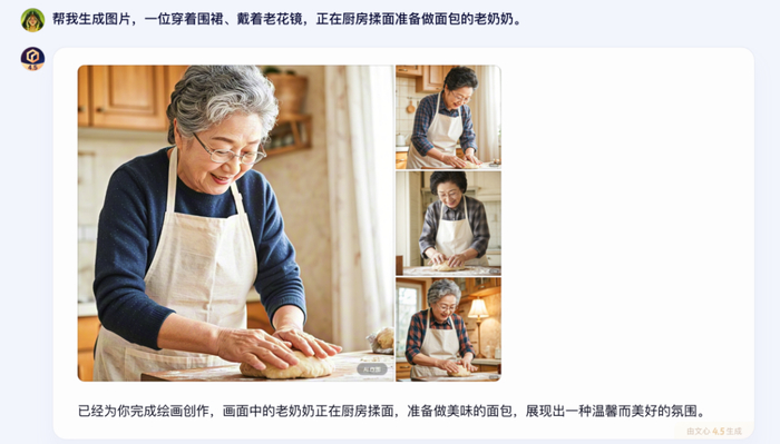 图片生成能力是文心4.5的亮点之一,相较于4.0版本进一步提升,能够准确生成主流人物和物品。它可以在百度自研的iRAG(image based RAG,检索增强的文生图技术)辅助下生成逼真的图片,把“AI味儿”和幻觉降到最低。