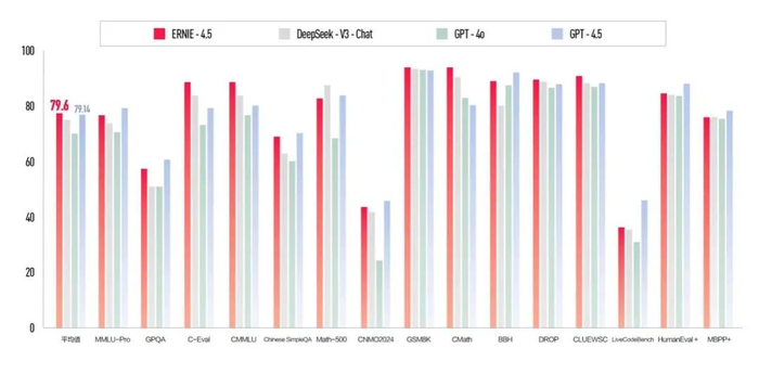 文心大模型4.5,是百度首个原生多模态大模型,性能上超越OpenAI的GPT4.5,但价格仅为其1%;文心大模型X1效果对标DeepSeek-R1,但价格仅为R1的一半!