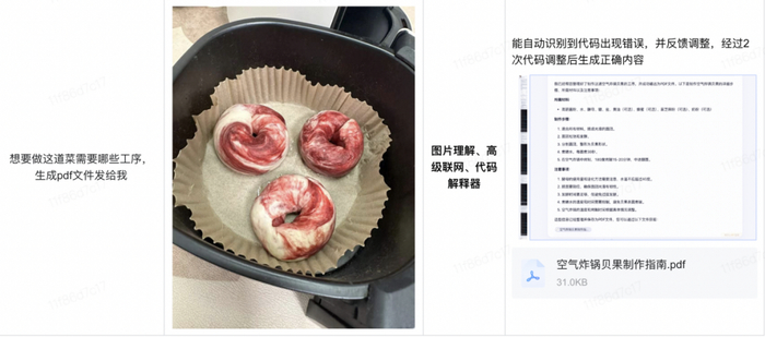 如果X1要有人设,它可能是一个更优秀的软装设计师:上传房子照片,可根据实际情况重新设计软装效果;也是一位美食专家:上传一张空气炸锅贝果照片,问它需要哪些工序;还可以作为健身教练:上传一张照片,分析你的健身姿势是否正确,并给出建设性建议;它也可以当你的剧本杀外挂:拍图进行谜题推理;或者数学专家:解答复杂数学问题。它甚至可以给你一个PDF文件,告诉你怎么做。