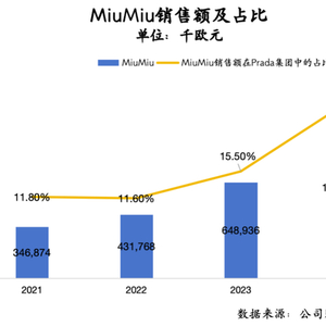 但令人意外的是,Prada集团旗下副牌Miu Miu却在逆势狂飙——
