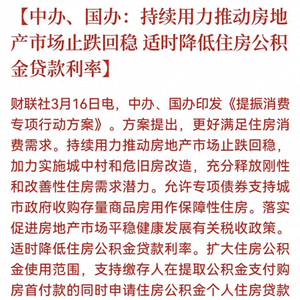 特大利好!中办、国办:降公积金贷款利率,持续用力推动止跌回稳