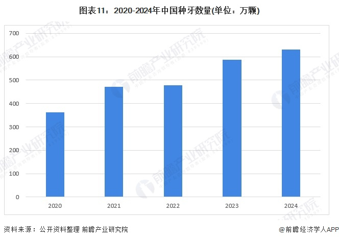 4、2024年种牙数约630万颗