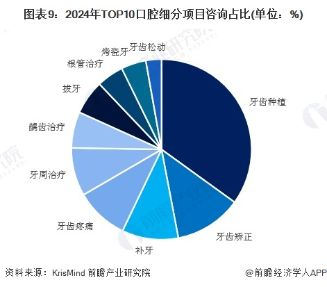 2024年口腔咨询中牙齿种植和牙齿矫正的占比相对较高。牙齿种植和矫正可以帮助人们解决牙齿缺失和畸形问题,改善口腔功能和外貌形象,受到广泛青睐。