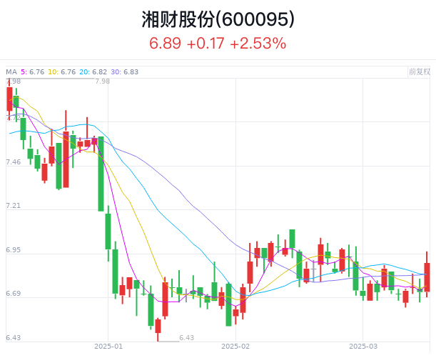 截至3月14日收盘,湘财股份股价报6.89元/股,总市值为197亿元。截至去年三季度末,湘财股份股东户数超10万。