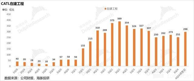 但自今年三季度开始,宁王就开始增加了资本支出,在四季度甚至达到了 99 亿元,环比增加了 25 亿元,同时从宁王的在建产能来看,电池系统在建产能 2024 年底达到了 219Gwh,相比 2024 年年中 153Gwh 继续增加,而在建产能金额也从三季度 252 亿环比增加 46 亿到了 298 亿。