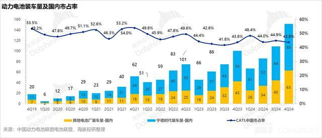 而市场目前对于 2025 年出货量预期还在 574 Gwh,同比增加 21%,海豚君预计目前股价对应的宁王的 2025 年 PE 倍数在 18-19 倍左右,海豚君认为在宁王 2025 年一季度业绩确定性相对较高的情况下,仍然不算贵,但如果在没有看到动力电池行业明显拐点已来至的情况下,在储能短期面临波动影响情况下,上行空间可能也相对有限。