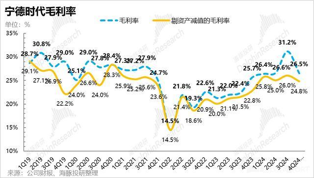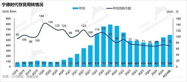 而虽然四季度产量大于销量(四季度产能利用率饱满),开始出现了存货积压,但同样也是向好迹象,宁王 2025 年一季度业绩的确定性反而相对更强,海豚君在下文中有提及。