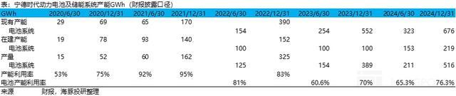 4)但产能利用率下半年相对饱满:从每次财报最关键的产能利用率指标来看(和宁王股价强相关,制造业最核心经营指标),宁王 2024 年下半年产能利用率 86%左右,同比 2023 年下半年提升了 8 个点,是个边际向好的经营指标。