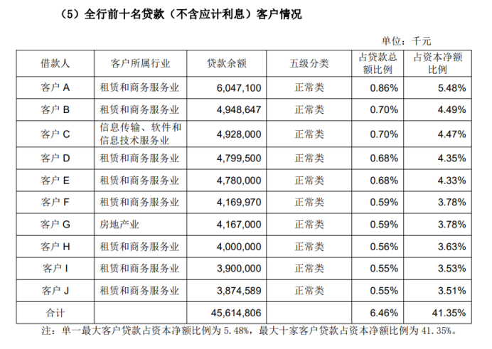 成都银行的贷款集中度也非常高,至2024年6月底时,前十大客户的贷款总额达456.15亿元,占同期资本净额的41.35%,在17家A股城商行中,仅次于西安银行和兰州银行。
