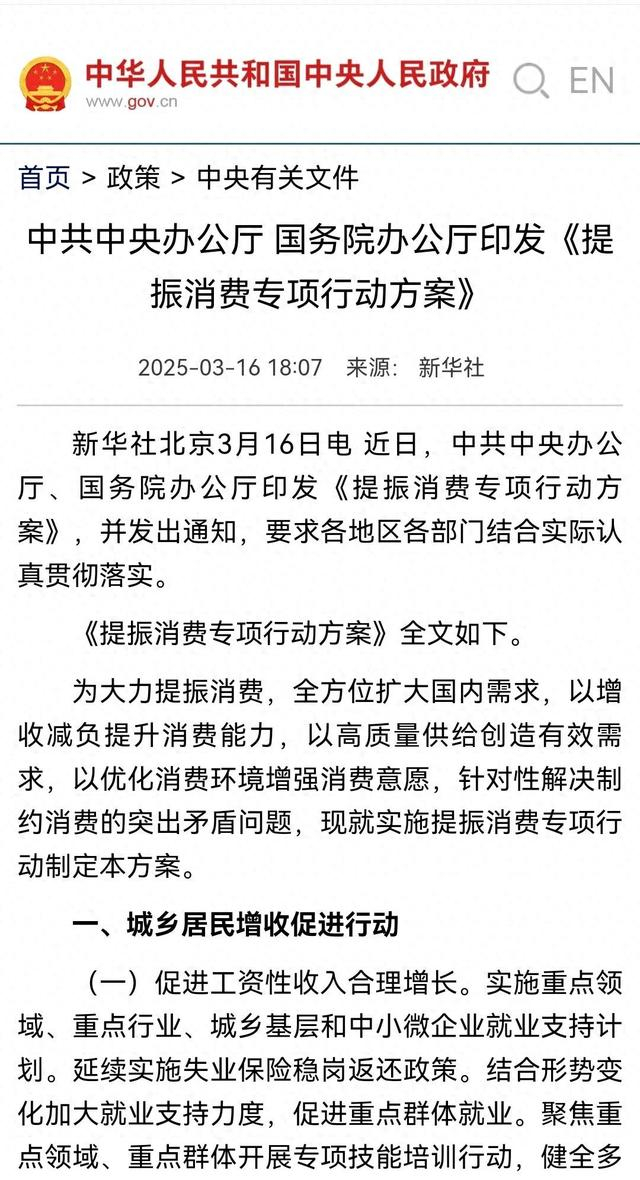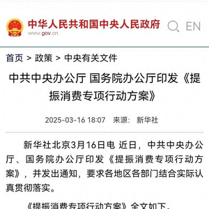 事关每个人,大家注意了,提振消费的方案终于发布了。3月16日,中共中央办公厅、国务院办公厅发布了《提振消费专项行动方案》,提出了30条措施。