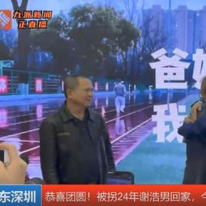 寻子24年,谢岳满头青丝变得稀疏。儿子谢浩男在团圆宴现场谈吐大方,他称一直感谢爸爸这么多年来坚持不懈找他,以后会让家里人开心快乐。