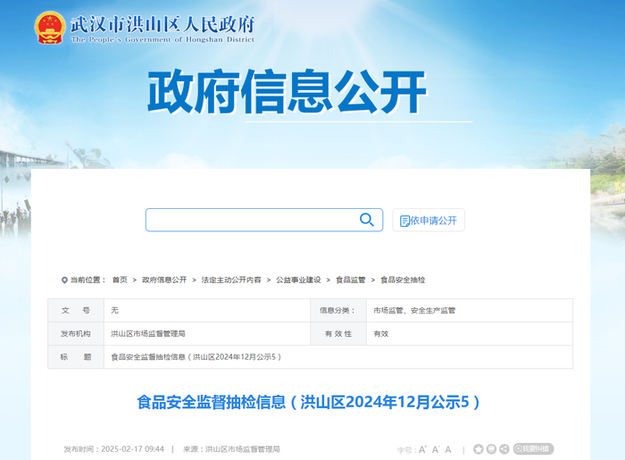 食品安全监督抽检信息(武汉市洪山区2024年12月公示5)
