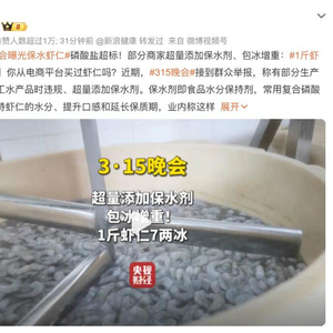 3月15日,央视3·15晚会曝光了多家水产企业违规使用保水剂为虾仁“增重”的黑幕,引发公众对冷冻水产品安全性的广泛关注。对此,连云港、湛江等地市场监督管理局迅速行动,查封涉事企业的原材料、半成品和成品,并责令召回相关产品。部分带货电商同样作出回应,下架全部虾仁相关商品,并先行按照“退一赔三”的金额进行售后服务。