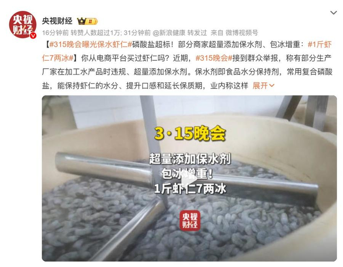 值得注意的是,部分企业并未在包装上标注保水剂成分,仅标明“虾仁和水”,涉嫌欺骗消费者。