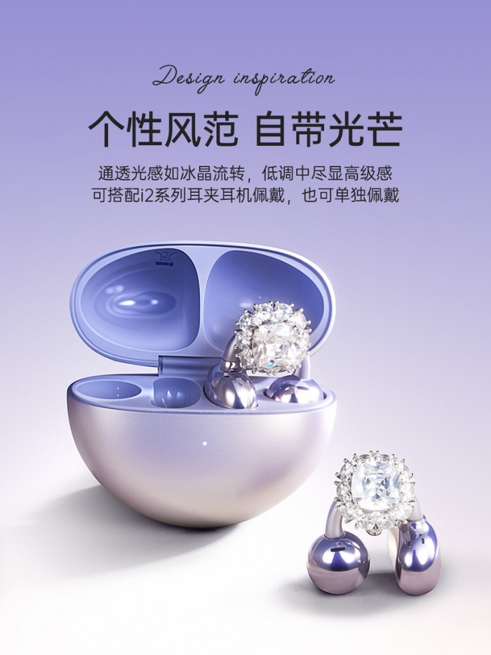 i2 采用珠宝级耳饰设计,耳挂直径较其他耳夹耳机产品细 10%,重量减轻 20%,搭配暖星云、星空黑、流光紫三款潮流配色,时尚感不输国际时尚大牌。其独创的270° 钛金丝耳挂结构,通过黄金弧度贴耳设计,将耳廓压力降至0.28N/cm²(较 i20 降低 40%),稳固度提升98%,真正实现 “戴上即隐形”。电商平台实测显示,i2 连续佩戴 8 小时无胀痛感,舒适度超大部分。