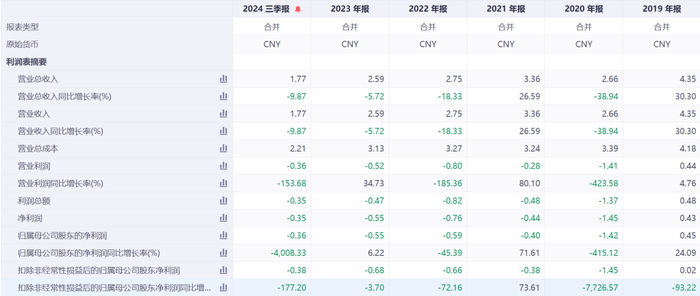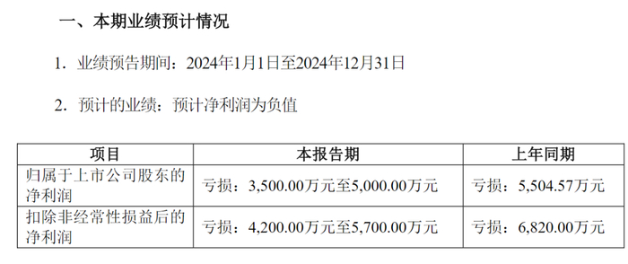 今年1月22日,中青宝发布业绩预告,预计2024年全年实现归属于上市公司股东的净利润为-3500万元至-5000万元,上年同期为-5504.57万元。公司预计2024年全年实现归属于上市公司扣除非经常性损益后的净利润为-4200万元至-5700万元,上年同期为-6820万元。值得注意的是,这已是中青宝连续第5年亏损。