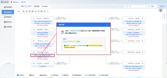 虚拟货币的匿名性导致链上地址与真实身份脱节,为案事件侦查带来核心挑战。“开源数据标签功能”基于全网公开数据构建链上链下身份关联网络,多维度标记链上地址,同步关联链下身份特征,还原指定人员身份画像。