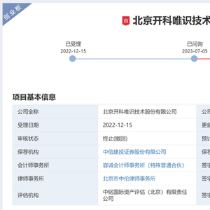 高速成长的开科唯识,也产生了闯关资本市场的计划。2022年12月15日,开科唯识创业板IPO申请获受理,中信建投保荐,计划募资8亿元。2023年7月之后,开科唯识完成两轮问询,但之后却迟迟未能上会,最终于2024年9月撤回IPO申请。